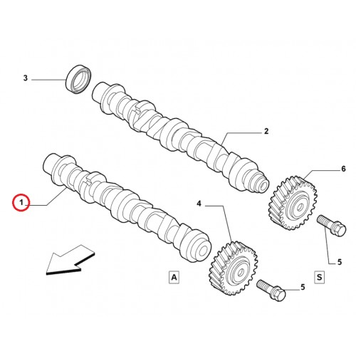Розподільчий вал випускний 1.4i 16v Doblo 2009-, Виробник: FIAT, OE: 55196047