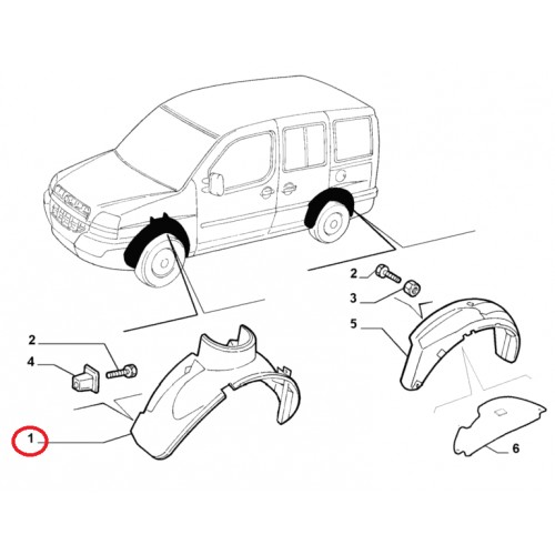 Підкрилок передній лівий Doblo 2005-2016 новий оригінал, Виробник: FIAT, OE: 51755108