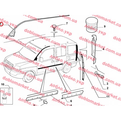 Молдинг даху правий Doblo 2000-2016 новий, Виробник: FIAT, OE: 46818788