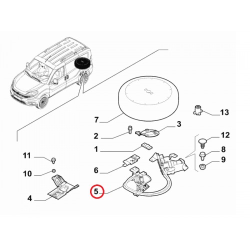 Пристрій кріплення запасного колеса Doblo 2009-2015, 2015-2023, Виробник: FIAT, OE: 51958386, 51902210, 52028736