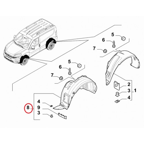 Підкрилок передній правий Doblo 2015-2023, Виробник: FIAT, OE: 51974251, 52065559, 52128361, 51974398, 52128364, 52065562