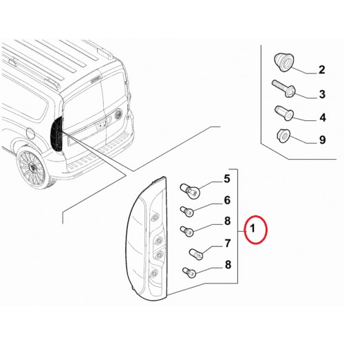 Ліхтар стопа правий Doblo 2015-2023 (кришка багажника) OPAR, Виробник: FIAT, OE: 51974249, 52044716
