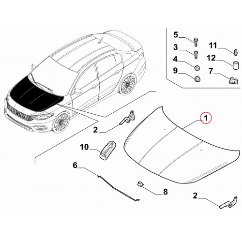 Капот Tipo 2015-2021, 2020-..., Виробник: DEGA, OE: 52110085, 51984308