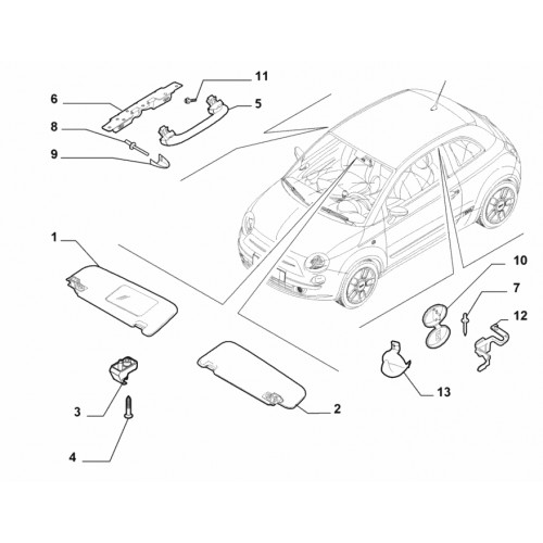 Козирок сонцезахисний лівий Fiat 500, Виробник: FIAT, OE: 735643362,735452611, 735734937, 735734947