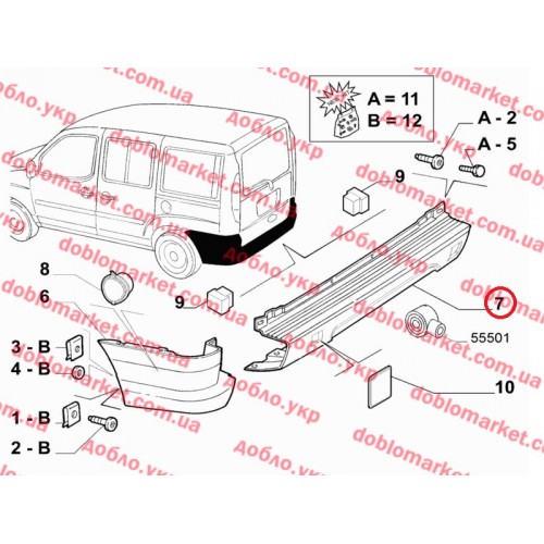 Бампер задній центральна частина Doblo 2005-2016, Виробник: FIAT, OE: 735448320, 735415725