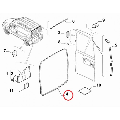 Ущільнювач дверей багажника Doblo 2009- (розпашні двері) Виробник Sosa, Виробник: FIAT, OE: 51844575, 52003612, 51844576, 0020409